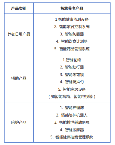 智慧养老产品可细分为三类:日用产品、辅助产品、陪护产品。